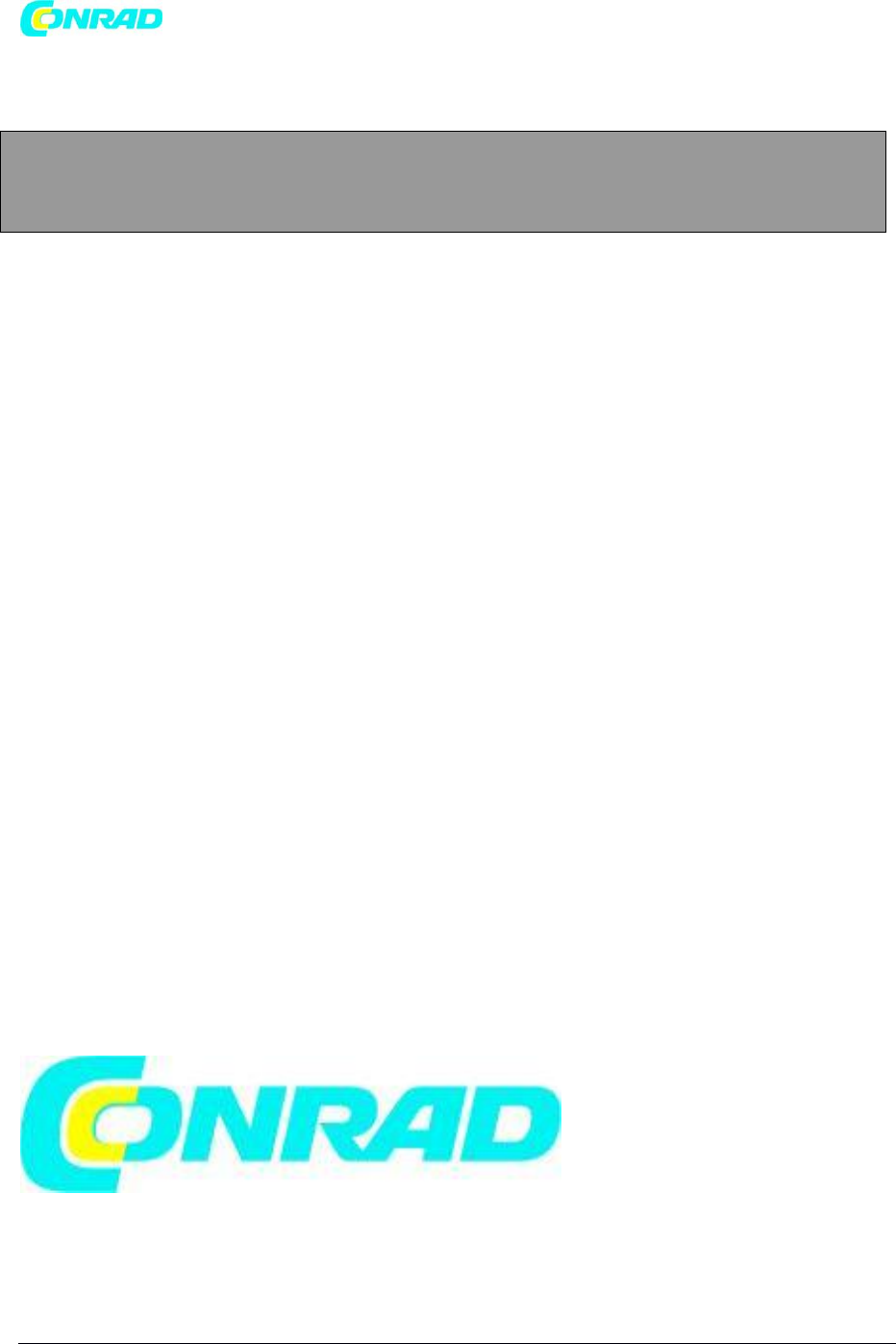 www.conrad.pl Prawidłowe funkcjonowanie produktu może być zakłócone przez silne promieniowanie elektromagnetyczne. Jeśli tak, po prostu wyłącz i włącz je ponownie, aby wznowić normalną pracę. Baterie Należy pamiętać, że urządzenie zawiera jedną lub więcej baterii. Baterie i akumulatory nie mogą być usuwane wraz z odpadami komunalnymi. Użytkownicy baterii i akumulatorów powinni zwrócić je do odpowiednich miejsc odbioru w celu poddania ich recyklingowi. Pozwoli to zadbać o nasze środowisko.