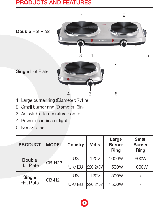 Hot Plates for Cooking, 1800W Electric Double Burner with Handles, 6 Power Levels Stainless Steel Hot Plate for Kitchen Camping RV Cast Iron
