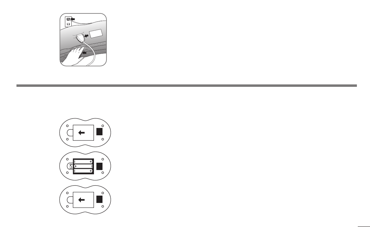 2 Coloque tres pilas AAA, haciendo coincidir los polos + y - de