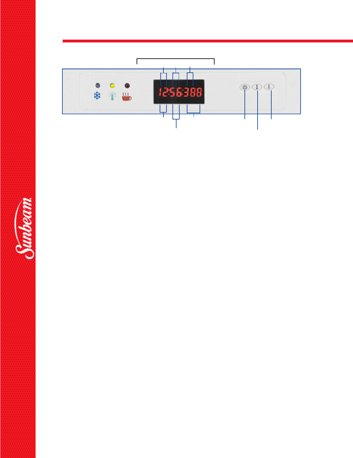 • Appuyer sur le bouton de l'HORLOGE pour passer en mode de réglage de l'heure. Sur l'affichage à diodes électroluminescentes, les deux premiers chiffres à