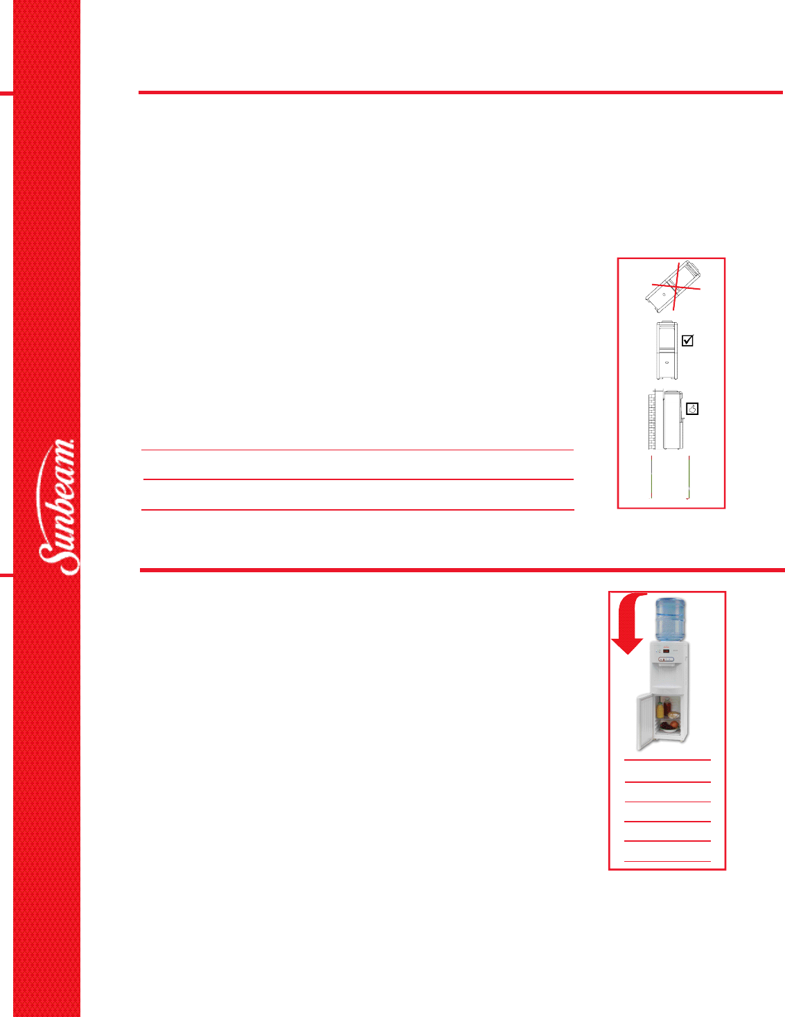 ongratulations, you have acquired a high quality SUNBEAM® Water Dispenser for bottled water. This unit is packed with
