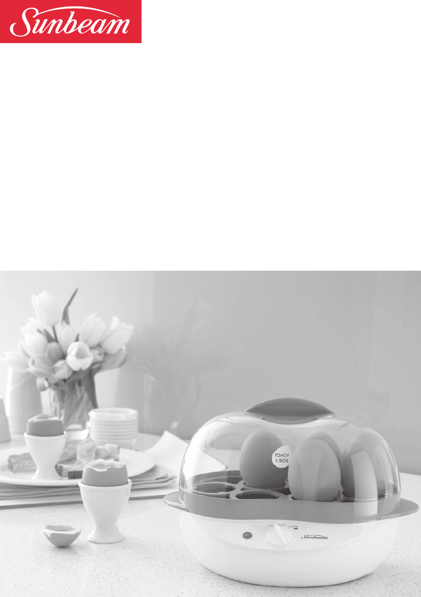 Contents Sunbeam’s safety precautions 3 Features of your Sunbeam Poach & Boil 4 Boiling eggs 6 Poaching eggs & savoury omelettes 7 Using the steaming rack 8 Care and cleaning 8 Egg tips 9 Recipes 10 Important instructions – retain for future use.