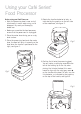 Using your Café Series Food Processor ® Before using your Food Processor • Wash the processing bowl, cover and all attachments in warm water using a mild detergent. Dry each part thoroughly before use. 3. Rotate the handle clockwise to lock, as indicated by the graphics on the left side of the motorbase, see figure 2. • Before you assemble the food processor, ensure that the power cord is unplugged. 1. Place the motor base facing you on a dry, level surface. 2.
