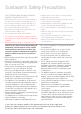 Sunbeam’s Safety Precautions • • • • • • • • • • • • • • • • • SAFETY PRECAUTIONS FOR YOUR SUNBEAM VARIABLE TEMPERATURE KETTLE. Boiling water will scald. Do not leave a boiling or hot kettle near or where children may touch it. Do not leave the power cord near the edge of a bench top where children may touch or pull it. Do not move kettle while switched on. Always turn the power off and unplug the cord while the kettle is NOT in use. Do not operate the kettle without water.