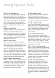 Ironing Tips and Tricks Tip # 27 - Iron shirts like a pro Start with the collar, working from the outer edges into the middle. Iron the shoulder next, followed by the cuffs and sleeves. Place the collar at the narrow end of the board so that one front panel of the shirt is extended flat. Iron the front panel from shoulder to shirt tail. Rotate to iron the back of the shirt. Rotate and complete the remaining front panel. Tip # 34 - Tips for T-shirts Straighten seams on t-shirts before hanging out to dry.