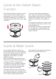 Using your VitaSteam Electronic Before using your VitaSteam Electronic for the first time, wash the steaming trays, rice bowl, lid and drip tray in warm soapy water. Rinse and dry thoroughly. Operate the Steamer for 15 minutes using a solution of 1 tablespoon lemon juice and 2 cups water in the reservoir. Note: You may notice a slight odour during this first operation. This is normal with many heating appliances and will not affect the performance of your Steamer. 1.
