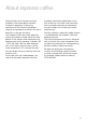 Reference guide to using your espresso machine (continued) 10 Place filter handle onto group head. 11 Turn filter handle to the right, as far as it will go. 12 Place large container under both pouring spouts. Making the espresso 14 15 Select appropriate filter and place into handle. Hold filter handle and purge with water to preheat. 17 18 13 Turn the operating dial to the espresso setting and allow water to run through. 16 Place finely ground coffee into filter. 10 Tamp the coffee grinds.
