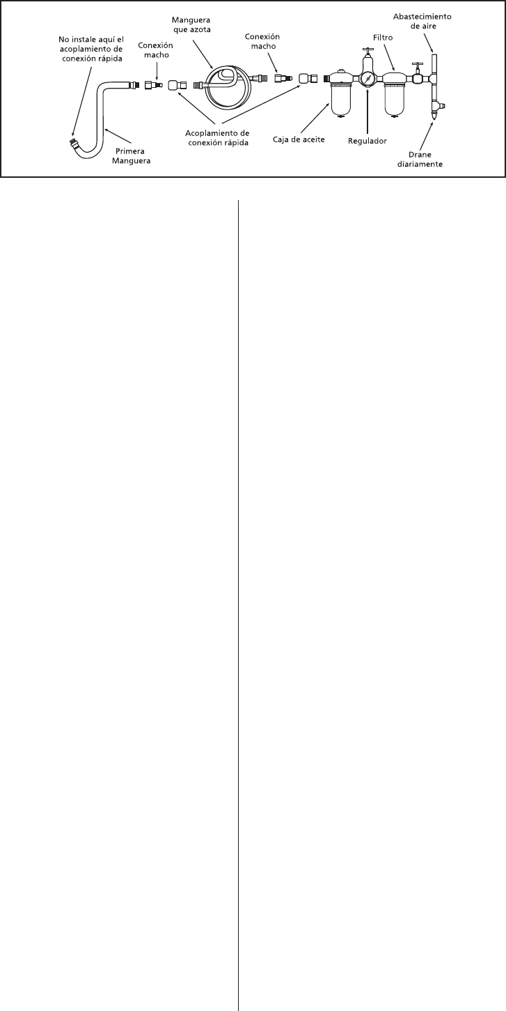 o en la manguera en la conexión más cercana al suministro de aire,