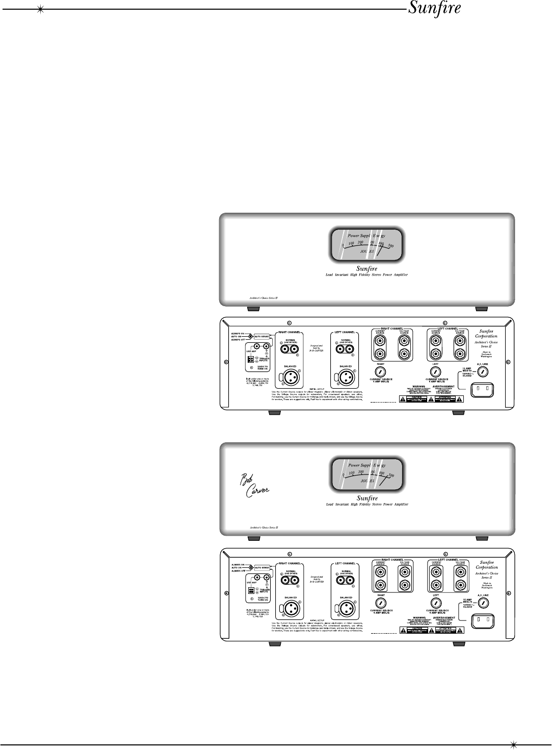 - Bob Carver's Sunfire Standard and Signature Stereo Power Amplifiers Architect's Choice Series II User's Manual