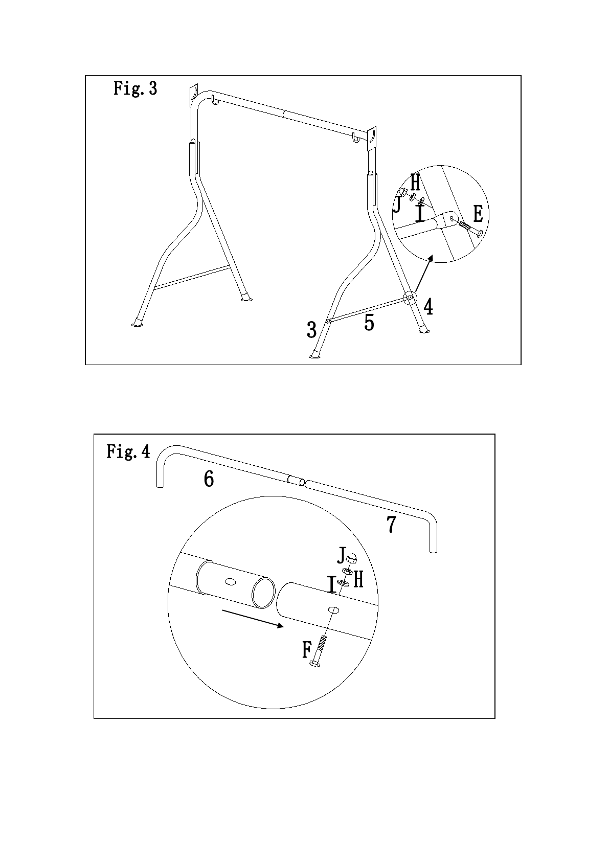 Fig.3:Using screw (E), flat washer (I), nut (H) and ball nut (J) to connect bottom support (5)