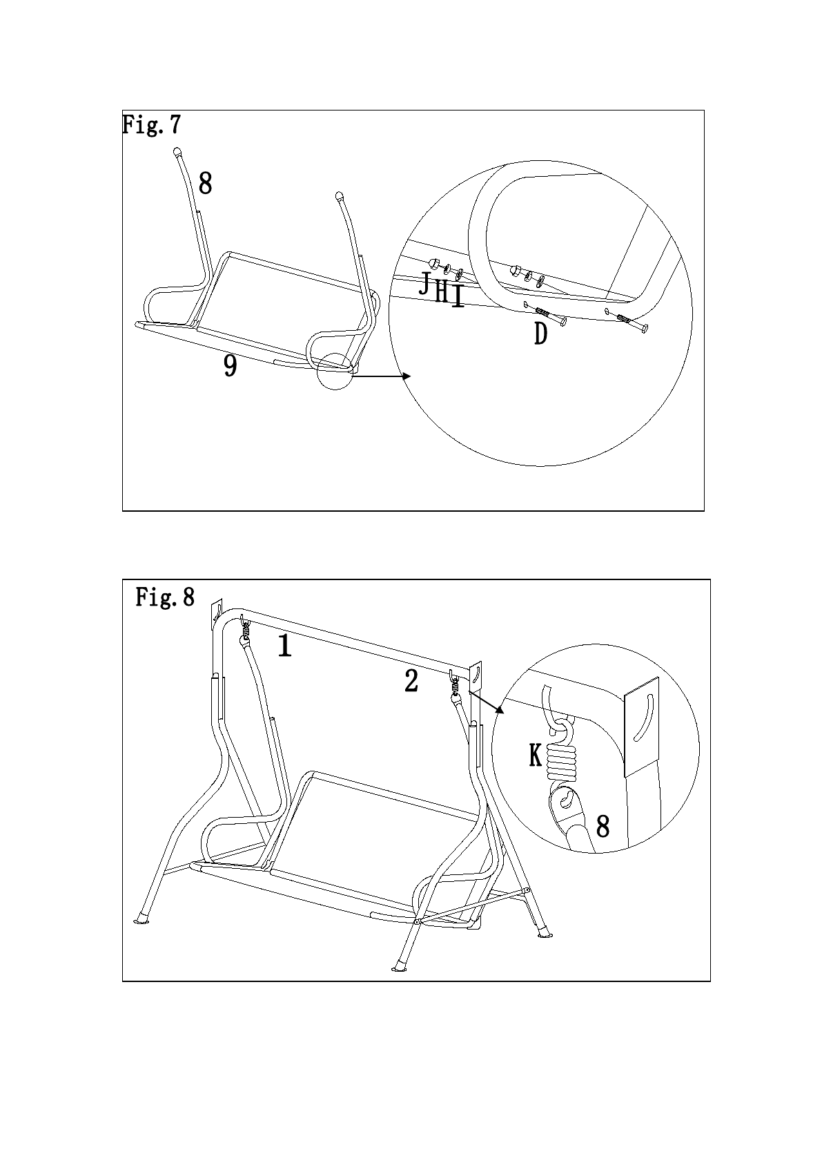 Fig.8: Attach one end of the hook (K) to the handrail (8) and other end to the rings on the top
