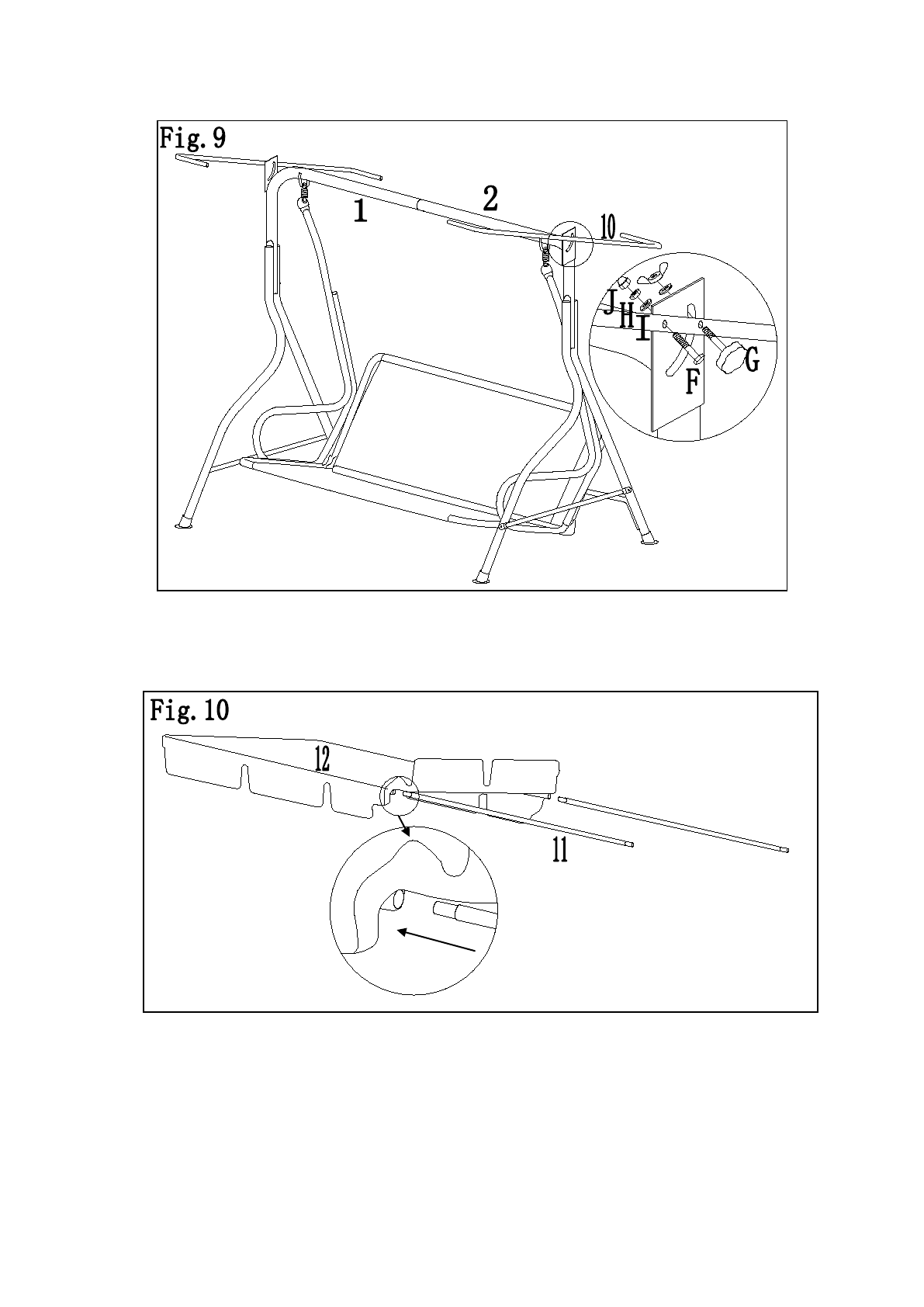 Fig.9: Using screw (F), flat washer (I), nut (H) and ball nut (J) to connect canopy side