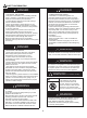 SAFETY INFORMATION WARNING WARNING California Proposition 65 Combustion by-products produced when using this product contain chemicals known to the State of California to cause cancer, birth defects, and other reproductive harm. • This product is fueled by propane gas. Propane gas is invisible, odorless, and flammable. An odorant is normally added to help detect leaks and can be described as a “rotten egg” smell. The odorant can fade over time so leaking gas is not always detectable by smell alone.