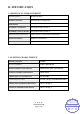 II. SPECIFICATION 1. MECHANICAL CHARACTERISTIC MOTOR DESIGN Brushless DC motor BEARING SYSTEM Lubricated sleeve bearing system DIMENSIONS See Page 6 MATERIALS OF FRAME Thermoplastic PBT of UL 94V-0 MATERIALS OF FAN BLADE Thermoplastic PBT of UL 94V-0 DIRECTION OF ROTATION Counter-clockwise viewed from front of fan blade MOUNTING HOLES Diameter 4.3 mm in 8 holes WEIGHT 75 g 2. ELECTRIC CHARACTERISTIC RATED VOLTAGE 12 VDC RATED CURRENT 70 mA / Max. 84 mA RATED POWER CONSUMPTION 0.