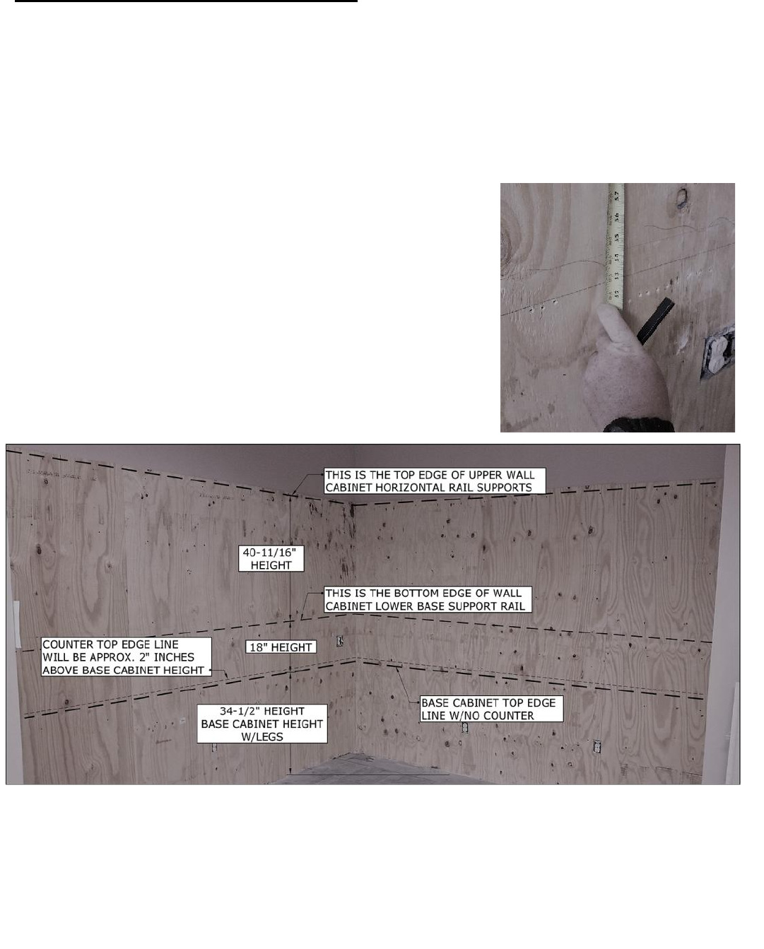 Counter Top Edge, Base of Wall Cabinet Rail Support and the Top Edge line of Wall