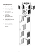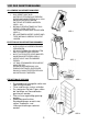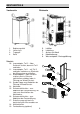 BESTANDTEILE Vorderseite 1. 2. 3. 4. Rückseite Bedienungsfeld Luftauslass Tragegriff Rolle 5. 6. 7. 8. 9. Zubehör 10. Innenadapter, Teil 2 – über Schlauch streifen, dann mit Teil 1 verbinden. 11. Innenadapter, Teil 1 – mit Teil 2 verbinden und dann an Rückseite der Klimaanlage anschließen. 12. Außenadapter – über Schlauch streifen, dann in Schaumstoffstreifen schieben (oder in Öffnung von Wand/Fenster). 13. Runde Kappe zum Abdecken der Öffnung in Wand/Fenster. 14. Abluftrohr. 15.