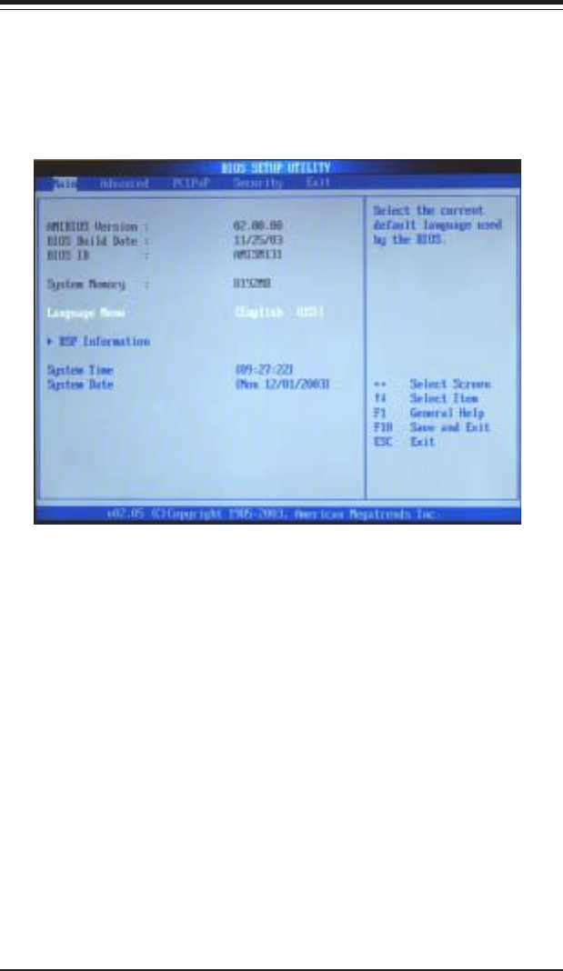 When you first enter the BIOS Setup Utility, you will enter the Main setup screen.