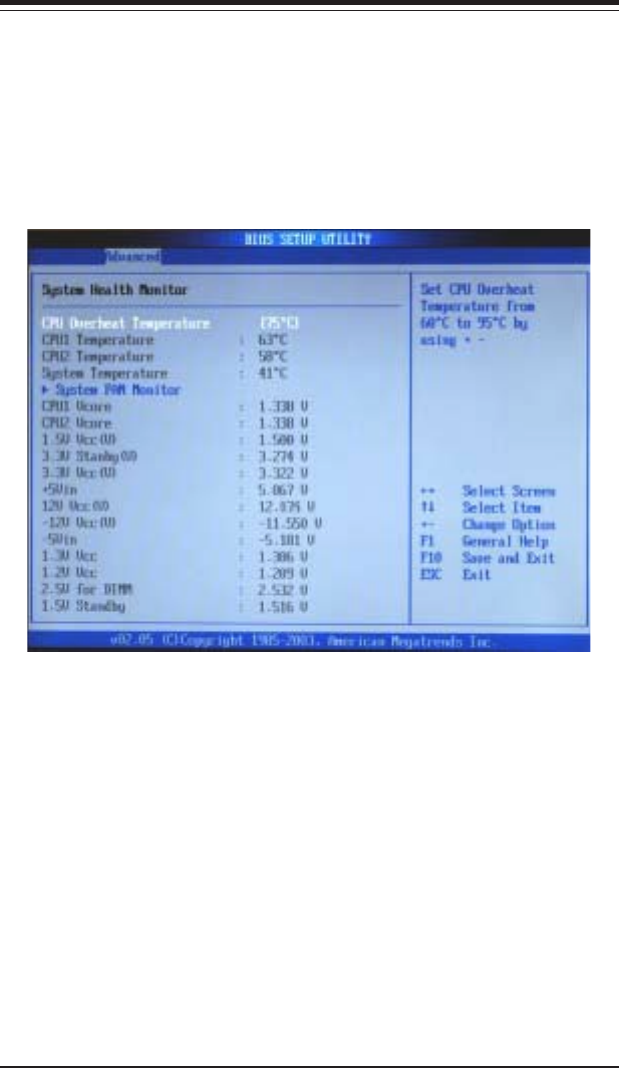 items: CPU Overheat Temperature, CPU1/CPU2 Temperature, various voltage