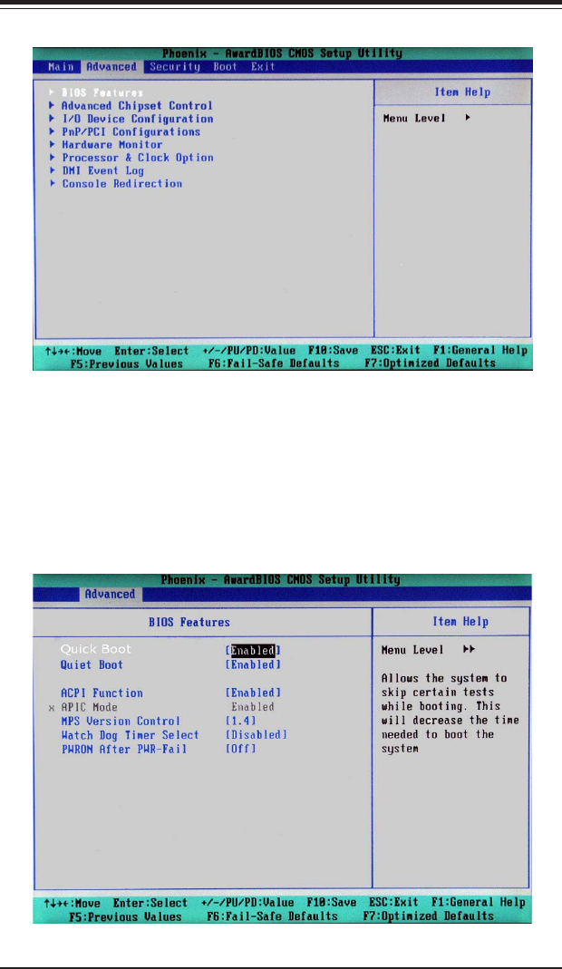 When the item of Advanced BIOS Features is highlighted, press the <Enter>