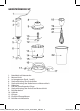 GERÄTEÜBERSICHT 1. 2. 3. 4. 5. 6. 7. 8. 9. 10. 11. 12. 13. Netzkabel mit Netzstecker Motoreinheit Leistungstasten (Stufe 1 und 2) Steckverbindung für die Aufsätze Steckverbindung des Stabmixers zur Motoreinheit Stabmixer Fuß mit innenliegender Klinge Steckverbindung des Deckels zur Motoreinheit Behälterdeckel Häcksler Klingen Einstecköffnung Messer Behälter mit Messskala 5 105281_HB950SC_IM_V01a_P130070_ok-ktk_04-07-2013_DE.