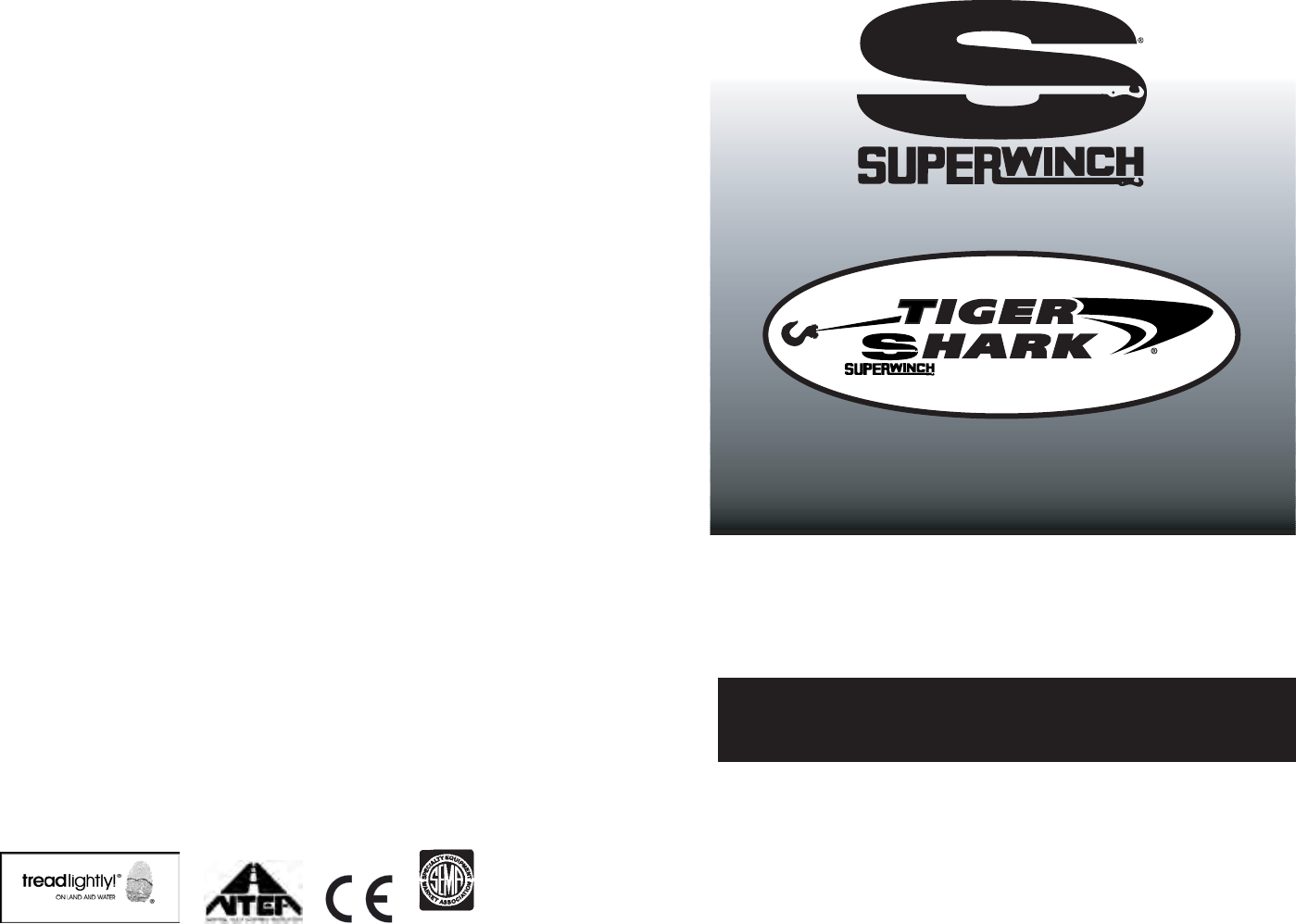 +- INSTALLATION GUIDE TIGER SHARK™ SERIES WINCH READ AND UNDERSTAND THIS MANUAL BEFORE INSTALLATION AND OPERATION OF YOUR SUPERWINCH. MEMBER SUPERWINCH®, SUPERWINCH® (design) and S SUPERWINCH® are registered trademarks of SUPERWINCH LLC. SUPERWINCH LLC., 359 Lake Road, Dayville CT 06241, USA © 2012 Superwinch LLC. 359 Lake Road Dayville, CT 06241, USA tel: 1.800.323.2031 fax: 1.860.963.0811 info@superwinch.com www.superwinch.com Superwinch LTD.