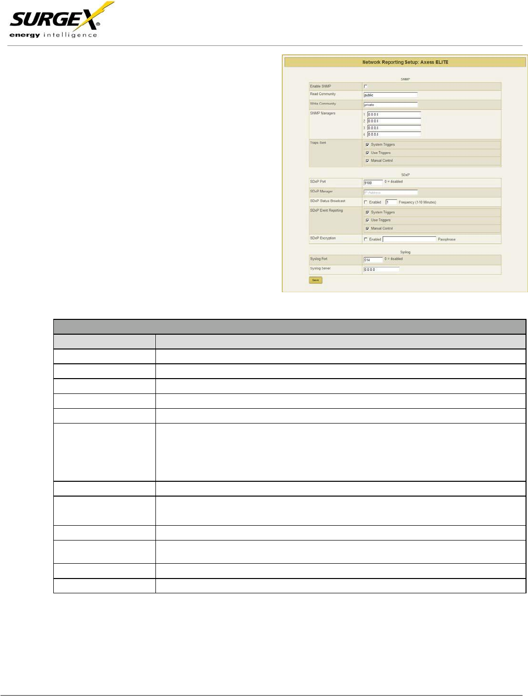 SDxP, and Syslog reporting.