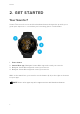 Suunto 7 1. 2. 3. 4. 5. Charging socket Microphone Optical heart rate sensor Barometric sensor Quick release straps Set up and pair your Suunto 7 Before you get started, make sure you have: • • • • • About 30 minutes (and maybe a coffee or some tea) A compatible phone A Wifi connection Bluetooth enabled on your phone A Google™ account (recommended) 1. Charge and power on 2. Download and pair with Wear OS by Google 3. Follow the Wear OS tutorial on watch 4. Start your sports with Suunto 5.