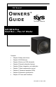 SV Sound OWNERS’ GUIDE SVS SB12-Plus Small Box — Plus 12” Woofer Contents: Chapter 2 Safety instructions Chapter 3 SVS Welcome Chapter 4 About your SVS subwoofer Chapter 5 General subwoofer features Chapter 6 Setup, integration, and calibration Chapter 7 Room compensation control Chapter 8 Parametric equalizer (PEQ) Chapter 9 Subwoofer specifications Chapter 10 Terms and Conditions Last update: 27 April, 2008