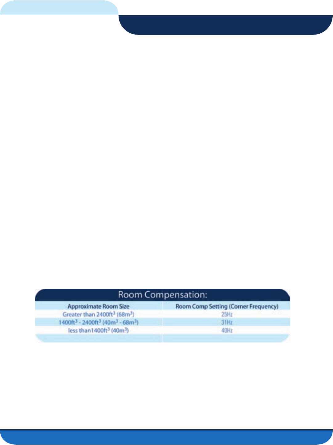 Use the table below as a guide to select the appropriate Room Compensation corner frequency for your