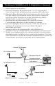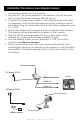 Procédures d'installation (voir le diagramme ci-dessous) 1. Reliez l'antenne au récepteur 2. Branchez l'adapteur de puissance de C.C 12V au récepteur. Ceci activera l'unité et l'indicateur de puissance LED s'allumera 3. Reliez les câbles d'audio/video au récepteur audio et à la vidéo hors des bornes. Notez que les bornes sont couleur codée pour assortir les câbles. Branchez les autres extrémités des câbles d'Audio/Video à votre TV ou magnétoscope. 4. Assortissez le canal du récepteur au canal de camera.