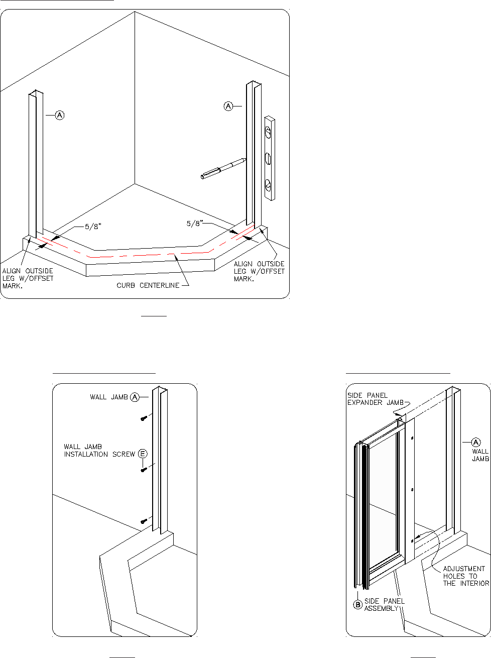 drilled in the shower walls. Secure each Wall Jamb (A)