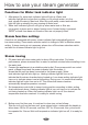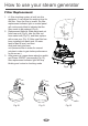 How to use your steam generator Functions for Water tank indicator light 1. After power On, water tank indicator light will light up. Water tank indicator light blinks to show that no water or not enough water is in the tank, please fill water to Max level. After filling with water, water tank indicator light will light up steadily for easy viewing of water level. 2.