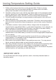 Ironing Temperature Setting Guide 1. Follow up the ironing instructions on the garment label. If there is not any instruction label, but you know what the fabric is, please refer to the fabric setting chart described in this instruction manual. 2. The fabric setting chart is only valid for plain fabrics and not for materials to which finishes, glosses etc, have been applied. Textile to which some kind of finish has been applied (gloss, crinkle, relief etc.) is best ironed at lower temperature. 3.