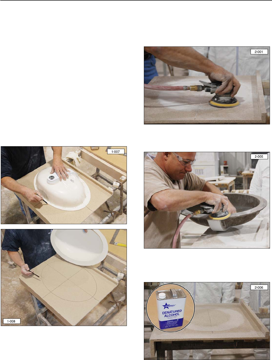 inside the sink outline, with 36 grit sanding pads.