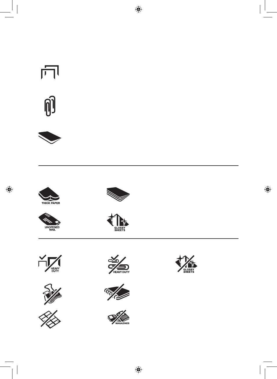 • Feuilles avec trombone, à 25 mm du coin au plus