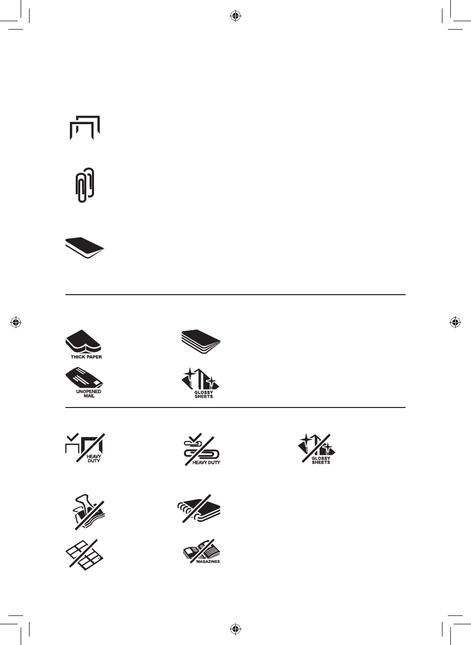 • Clipes de papel pequenos/médios (espessura máxima do arame = 0,9 mm)