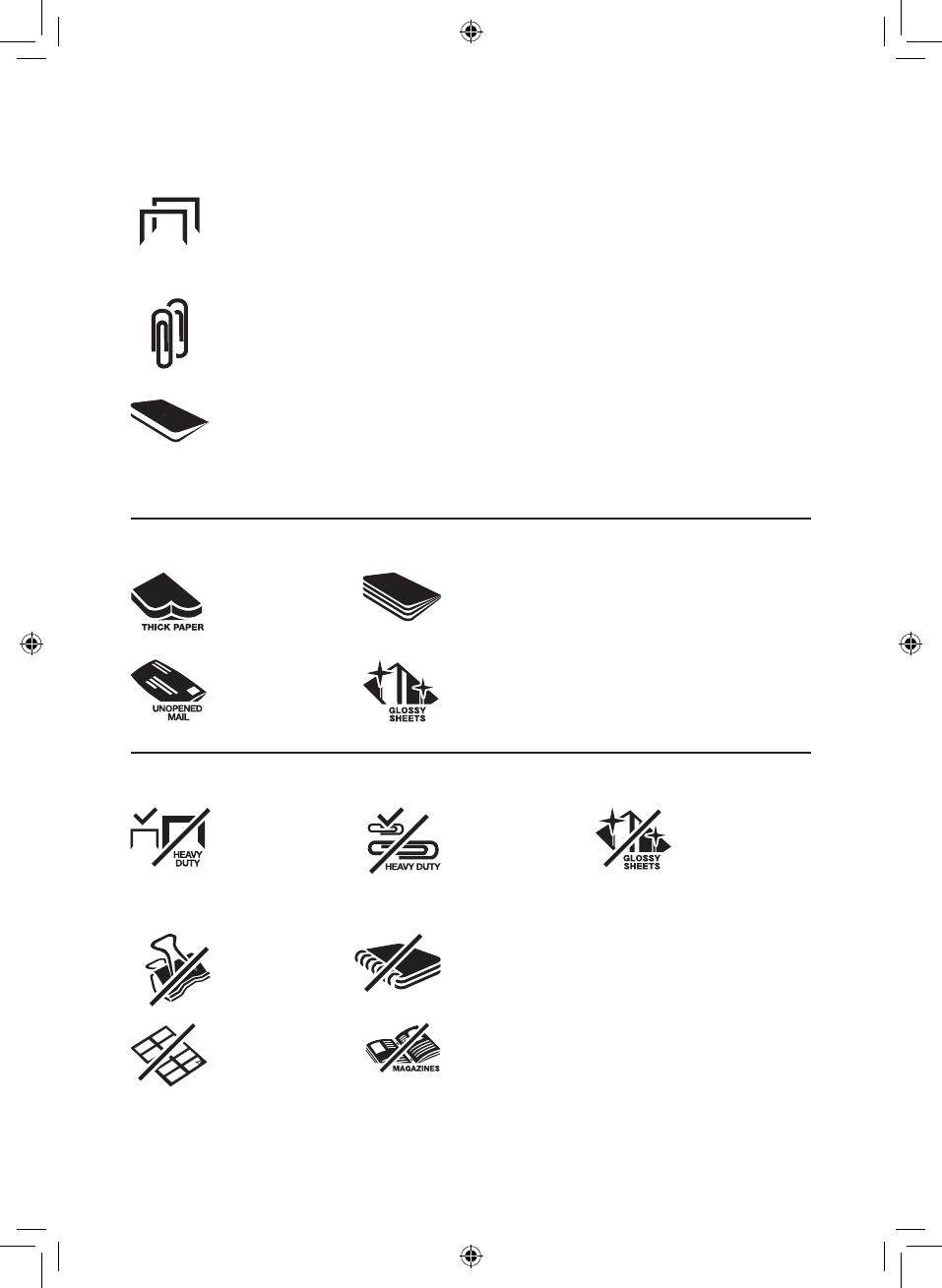 • Paper clip paper, 25mm within the corner (300M through manual feed slot ONLY)
