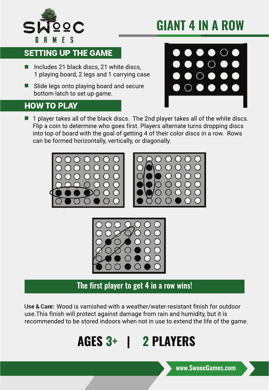 into top of board with the goal of getting 4 of their color discs in a row. Rows
