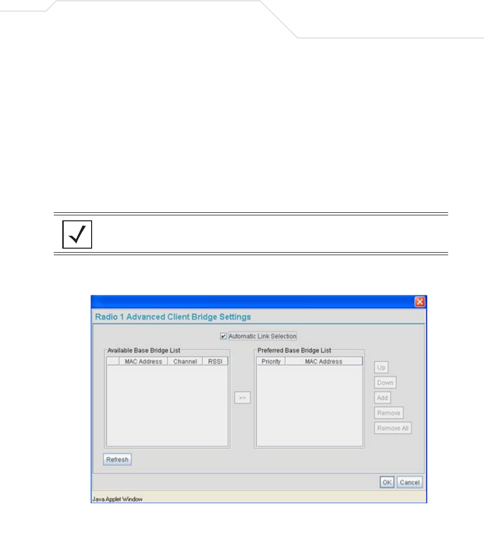 menu to select the WLAN (ESS) the client bridge uses to establish a wireless link. The