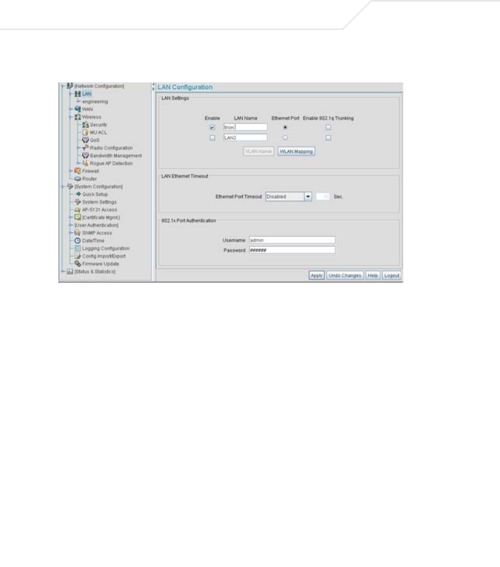 3. The Trion IT department selects Network Configuration -> LAN from the AP-5131 menu