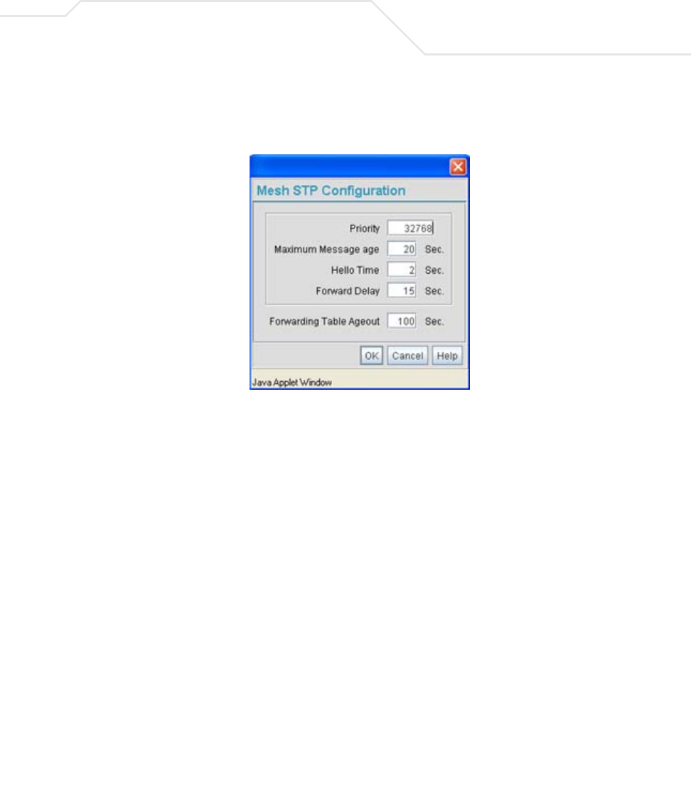 The remainder of the Mesh STP Configuration settings are left unchanged from their default