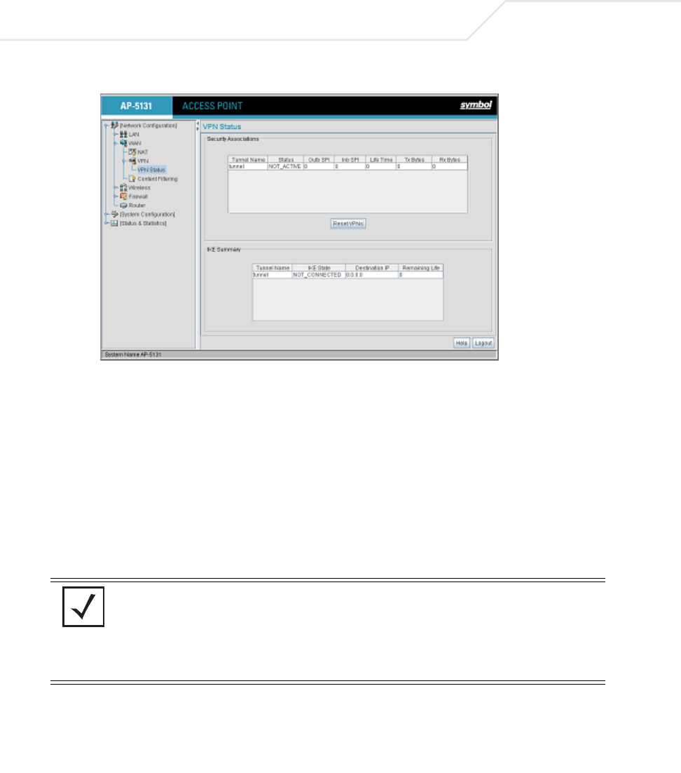 Below is how the access point VPN Status screen should look if the entire configuration is setup