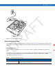 Accessories 6-9 R AF T Battery Battery Charging LEDs (4) Figure 6-9 Four Slot Battery Charger Battery Charging Indicators D The charger has an amber LED for each battery charging well. See Table 6-3 for charging status indications. The 2200 mAh battery fully charges in less than five hours and the 3300 mAh battery fully charges in less than seven hours. Charging Temperature Charge batteries in temperatures from 0°C to 40°C (32°F to 104°F). Charging is intelligently controlled by the MC55.