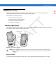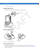 Accessories 6-9 R AF T Battery Battery Charging LEDs (4) Figure 6-9 Four Slot Battery Charger Battery Charging Indicators D The charger has an amber LED for each battery charging well. See Table 6-3 for charging status indications. The 2200 mAh battery fully charges in less than five hours and the 3300 mAh battery fully charges in less than seven hours. Charging Temperature Charge batteries in temperatures from 0°C to 40°C (32°F to 104°F). Charging is intelligently controlled by the MC55.