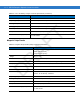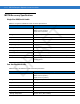 Technical Specifications Table A-4 Four Slot Ethernet Cradle Technical Specifications (Continued) Feature Description Charging Temperature 0°C to 40°C (32°F to 104°F) Humidity 5% to 95% non-condensing Drop 76.2 cm (30.0 in.) drops to vinyl tiled concrete at room temperature Electrostatic Discharge (ESD) +/- 15 kV air +/- 8 kV contact T Four Slot Charge Only Cradle Table A-5 Four Slot Charge Only Cradle Technical Specifications Feature Length: 46.80 cm (18.42 in.) Width: 10.90 cm (4.29 in.