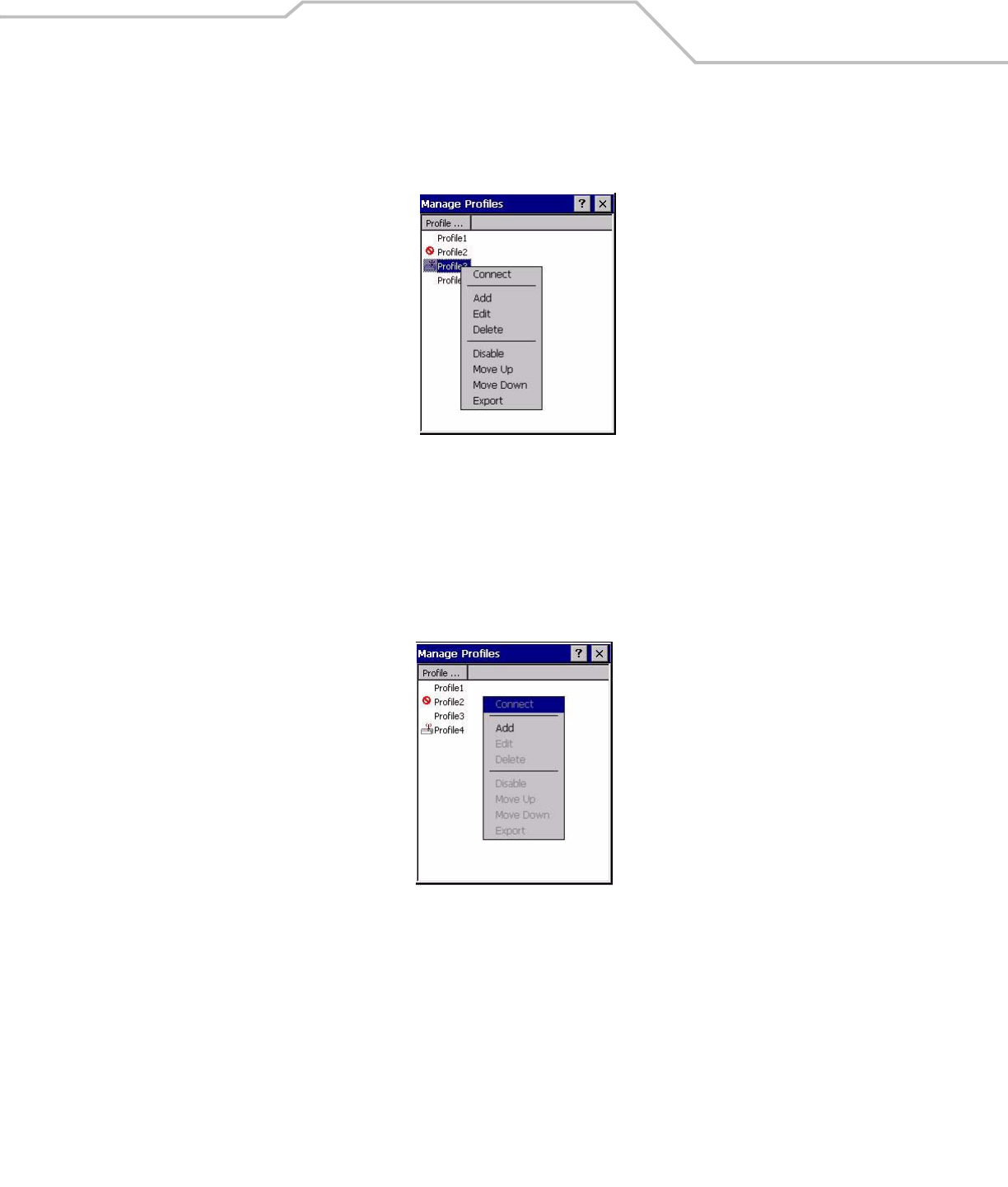 connected, edited, disabled (enabled) or deleted. (Note: the Disable menu item changes to Enable if the profile is already disabled.)