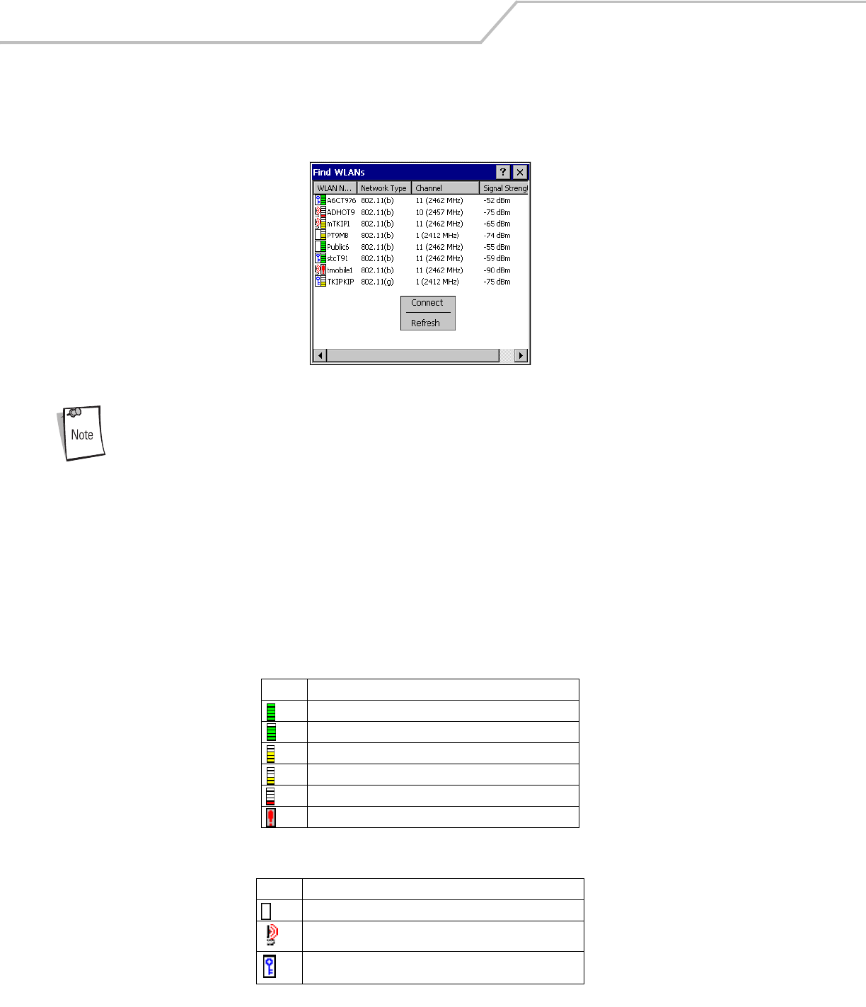 WLANs application, tap the Signal Strength icon - Find WLANs. The Find WLANs window displays.