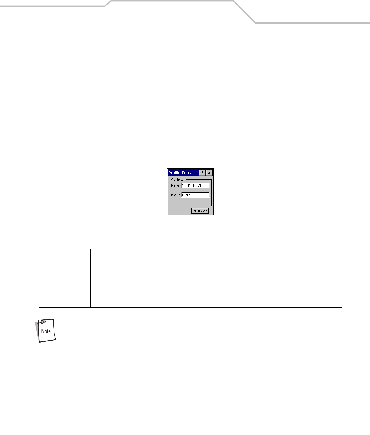 populated with the current settings for that profile. If creating a new profile, the known information for that WLAN network are