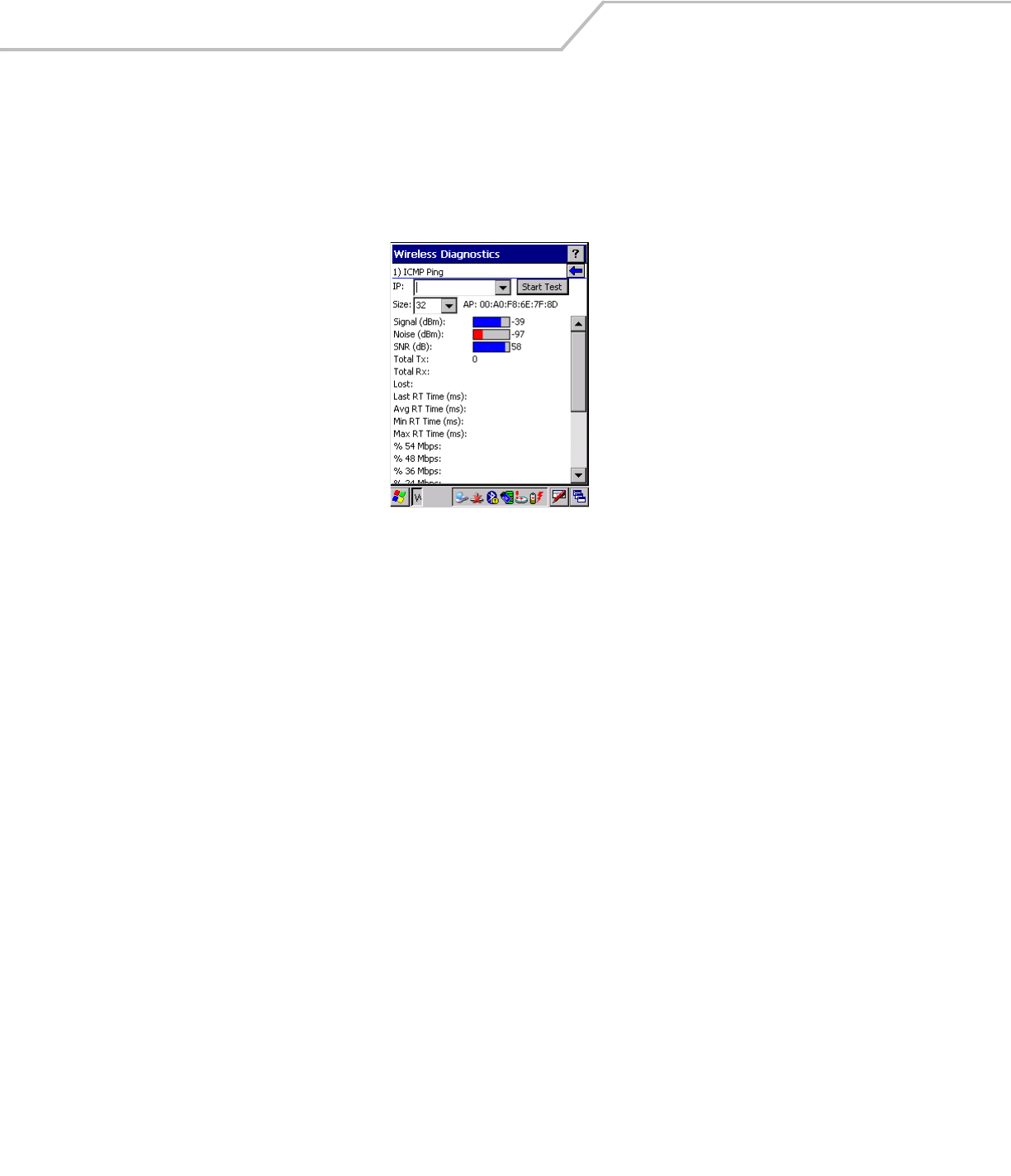 and an AP. Ping tests only stop when the user taps the Stop Test button, closes the Wireless Diagnostics application, or if the mobile