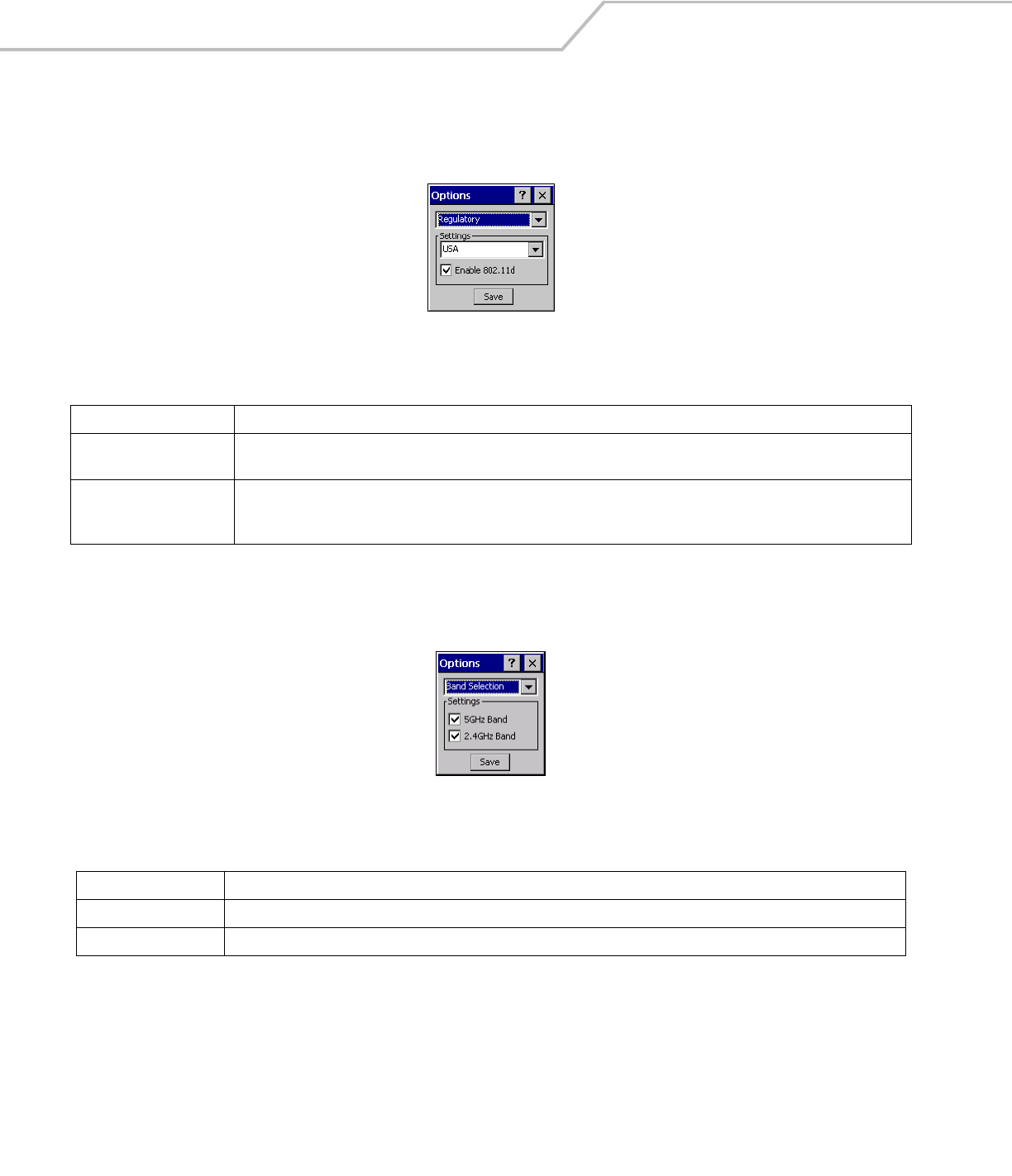 Use the Regulatory settings to configure the country the mobile computer is in. Due to regulatory requirements (within a country) a